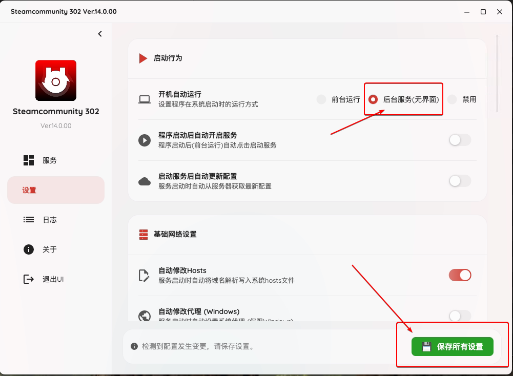 - 后端修复设置页面无保存配置时无法正常启动服务