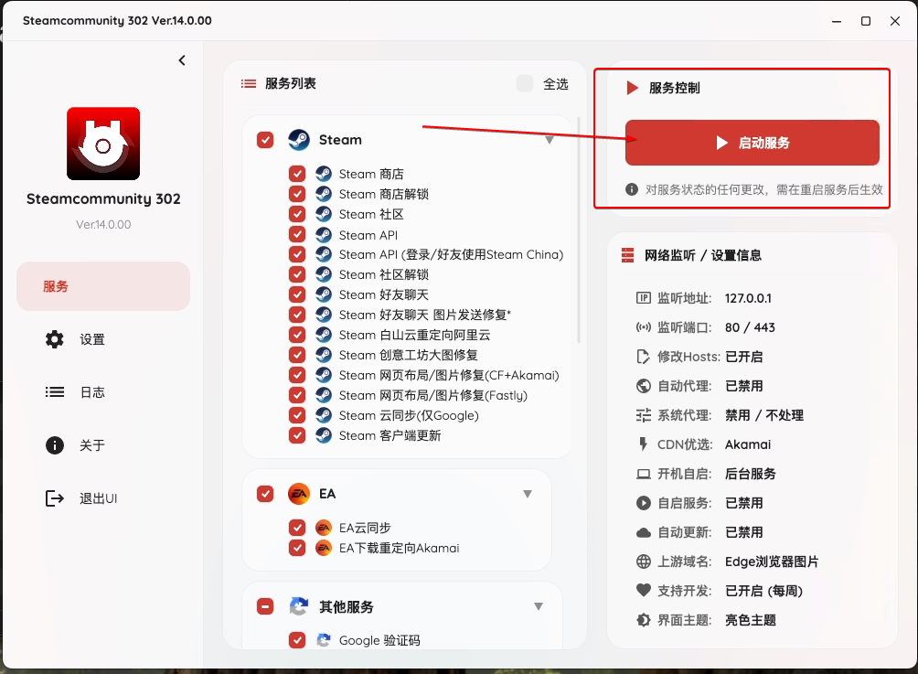 增加在线自动更新配置功能修复旧(12.x)版本Steam登录反代功能无法使用 – Windows下不可用,Mac/Linux正常Akamai的CDN优选现在使用多个IP负载均衡容错