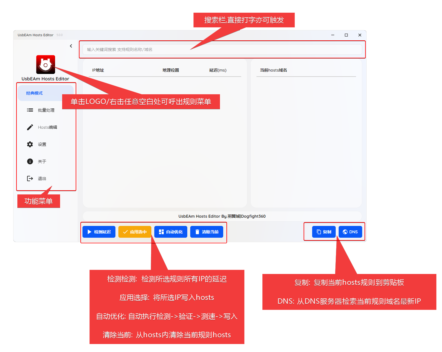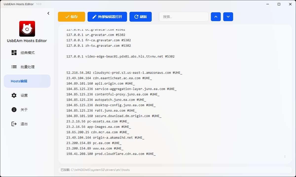 - hosts编辑用于对hosts文件直接编辑,内置基础搜索功能,满足一般的编辑需求
